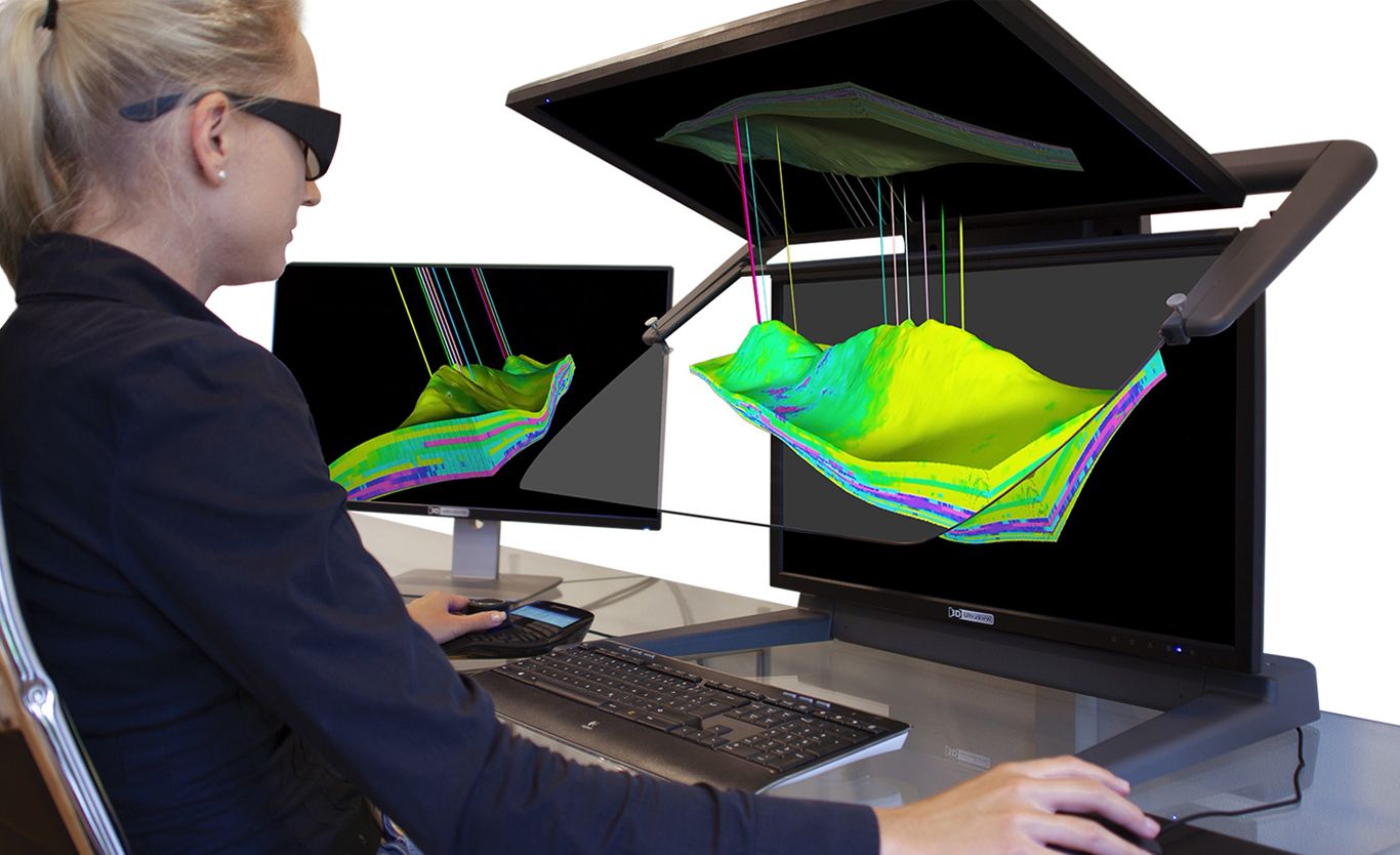In order to optimize the exploration and production of oil and gas fields, assess potential and increase yield, it is mandatory to understand all aspects of the geological subsurface situation. A higher level of understanding will lead to an earlier recognition of problems, reduce avoidable delays and associated substantial expenses. The optimal visualization of 3D geo-datasets is the key for geologists and geophysicists to analyze and evaluate geological and geophysical information components with the highest degree of confidence. The stereoscopic 3D PluraView dual-screen systems with integrated beam splitter mirror from Schneider Digital, offer such an optimal 3D visualization right at the workplace. With up to 4K resolution per screen and stereo-channel, the user benefits from a readily available, extremely bright and high-contrast 3D-stereo display on his/her desktop, when evaluating stratigraphic profiles, seismic 3D data, borehole information and derived 3D models. In the oil and gas industry, stereo-capable software platforms, such as Petrel from Schlumberger, Halliburton GeoProbe or MapInfo Discover are utilized. These allow the professional user to integrate, display and analyze all relevant subsurface information components quickly and comprehensively, display variants and associated simulations, improve play understanding and ultimately support more accurate hydrocarbon recovery forecasts. The visualization in 3D-stereo is an integral part of a ‘best-practice toolkit’, ensuring the success of the project.