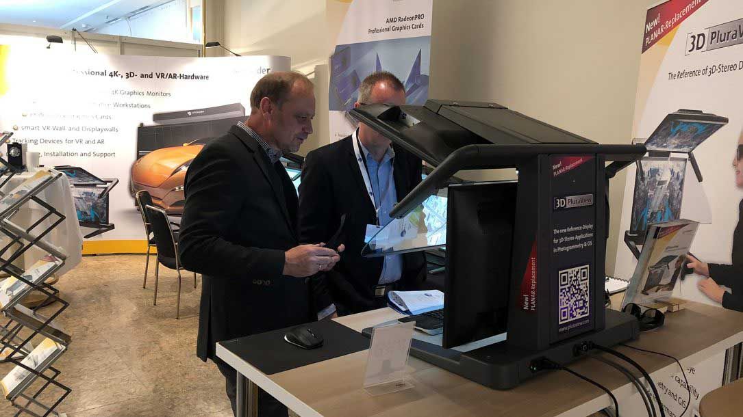 Darüber hinaus waren viele vom Bund zertifizierte Partner und Lieferanten im Rahmen der großen Fachausstellung vor Ort – so auch Schneider Digital mit seinem innovativen 3D PluraView passiv 3D-Stereo Monitor, der live im Praxis-Einsatz den Fach-Besuchern aus den Bereichen Luftraumüberwachung, Verteidigung, GIS/Mapping und Photogrammetrie seine Performance demonstrierte.