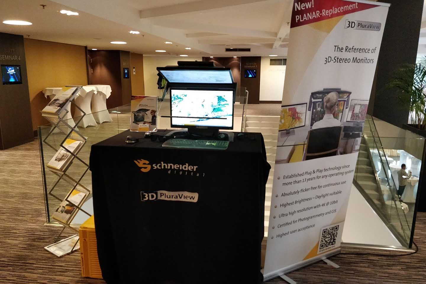 Der passive 3D-Stereo Monitor 3D PluraView von Schneider Digital war auf der diesjährigen Anwenderkonferenz DER Anziehungspunkt für die GIS-Anwender und live, in der Praxis im Einsatz. Zusammen mit der Esri ArcGIS Software ist der 3D-Stereo Monitor eine perfekte Hard- und Software Symbiose für GIS-Anwendungen. Das 3D-Arbeiten mit einem echten 3D-Erlebnis ist dank der Beamsplitter-Tehnologie möglich: Zwei Displays, die rechtwinklig, getrennt durch eine „Beamsplitter“-Scheibe in der Winkelhalbierenden, zueinanderstehen.