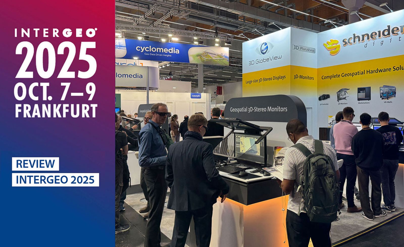 Auch 2025 präsentierte sich Schneider Digital auf der INTERGEO (7.–9. Oktober in Frankfurt) als eines der führenden Unternehmen im Bereich der 3D-Stereo-Visualisierung. Zahlreiche Besucher nutzten die Gelegenheit, sich an unserem Stand in Halle 12.1, Stand 1D 114, über die neuesten Entwicklungen in der Geodatenvisualisierung und Kartierungstechnologie zu informieren.