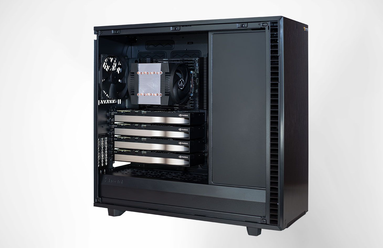 Sie wollen den ultimativen Produktivitätsbooster? Wir haben gemeinsam mit AMD unsere PULSARON Threadripper™ PRO Workstation entwickelt. Diese wahrhaft konkurrenzlos-schnelle Kraftmaschine reißt die Leistungsgrenzen herkömmlicher Single- und Dual-Socket Workstations nieder und ist mit allen AMD-Performance Features bei Schneider Digital erhältlich. Schneider Digital und AMD bringen zusammen, was zusammengehört: geballte 64-Kern CPU-Dynamik mit 128 Threads angebunden an Hochleistungs-Arbeitsspeicher mit 3.200 MHz Takt, der auf 2-Terabyte ECC erweitert werden kann. Unser Mainboard mit 7x PCI Express 4.0 x16 Steckplätzen für Ultra- High-End Grafikoptionen und der Möglichkeit 16 NVMe-Massenspeicher mit U.2 oder M.2 Schnittstellen als internes geräuschloses, sehr schnelles RAID Laufwerk bereitzustellen, integrieren wir in ein schmuckes, kompaktes Gehäuse mit einem optimal-dimensionierten Kühlungskonzept. Damit ist die ISV-zertifizierte PULSARON Threadripper™ PRO Workstation fit für komplexeste Photogrammmetrie, Rendering- und Visualisierungsworkflows, 8K-Streaming und (AI) Simulationslösungen.