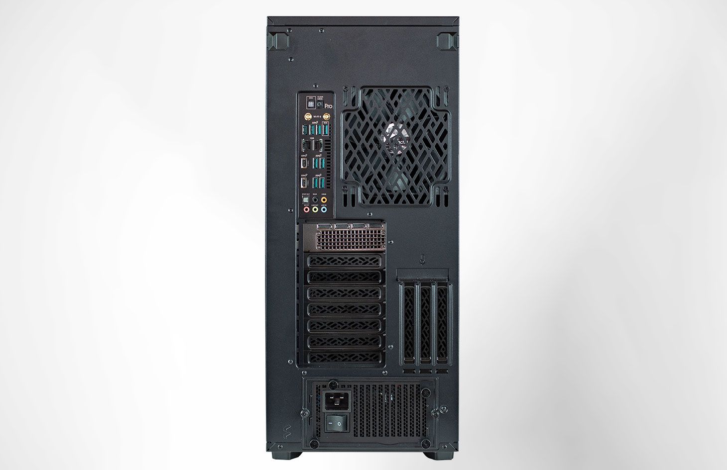 Anschlüsse/Steckplätze | Vorderseite: 2x USB-A 2.0 2x USB-A 3.2 Gen 1 1x USB-C 3.2 Gen 2 Mikrofon-/Kopfhörer-Kombianschluss Rückseite: 2x USB-A 3.2 Gen 2 1x USB-C 3.2 Gen 2 1x USB-C 3.2 Gen 2×2 2x RJ45 10-Gbit/s-Ethernet 5x Audio Ausgang 1x Optical S/PDIF |