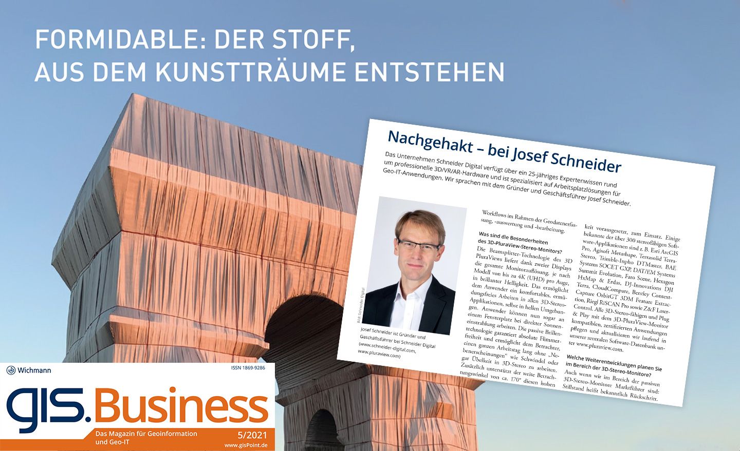 Schneider Digital has 25 years of expertise in professional 3D/VR/AR hardware and specializes in workplace solutions for geo-IT applications. The trade magazine gis.Business spoke with founder and CEO Josef Schneider.