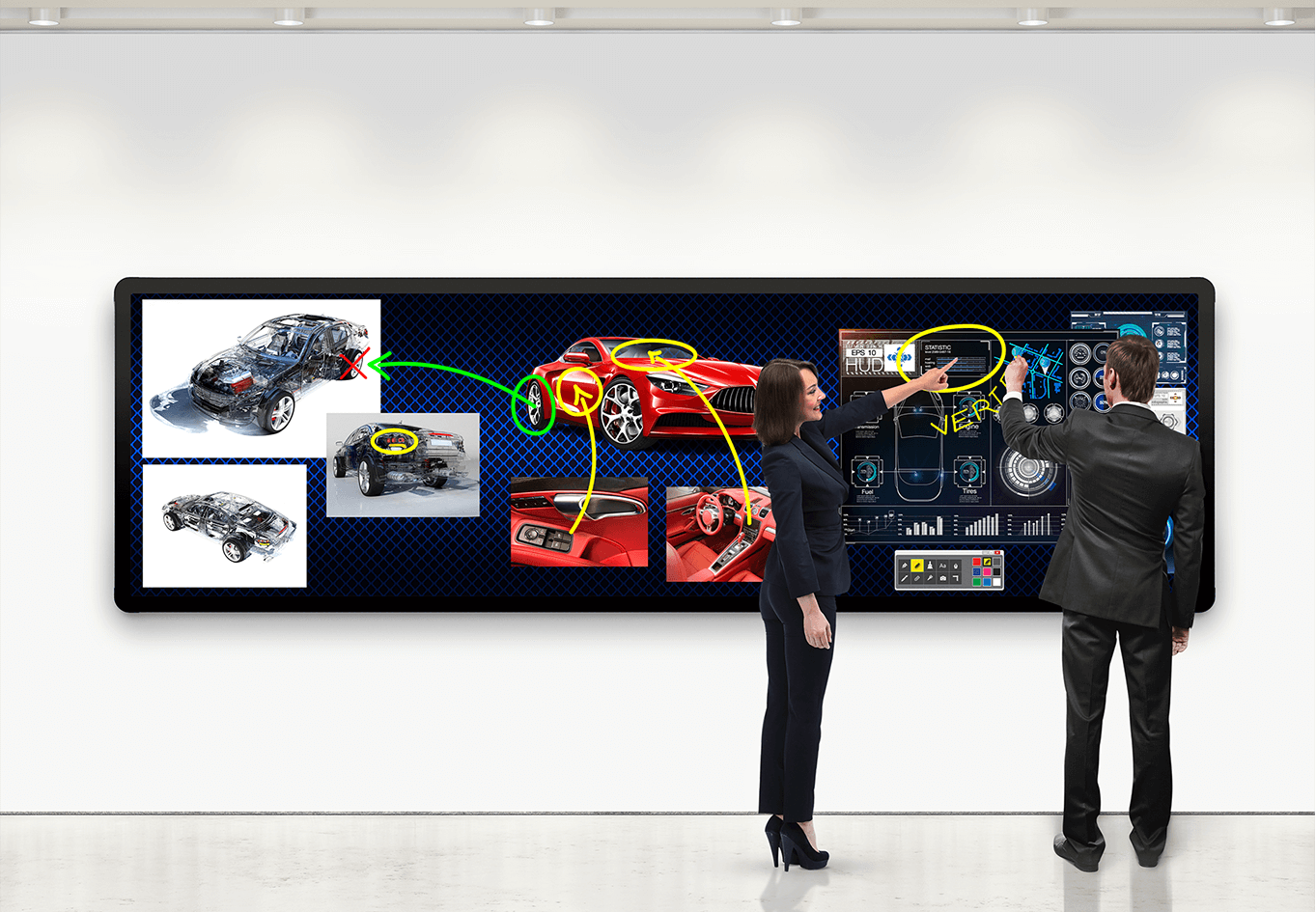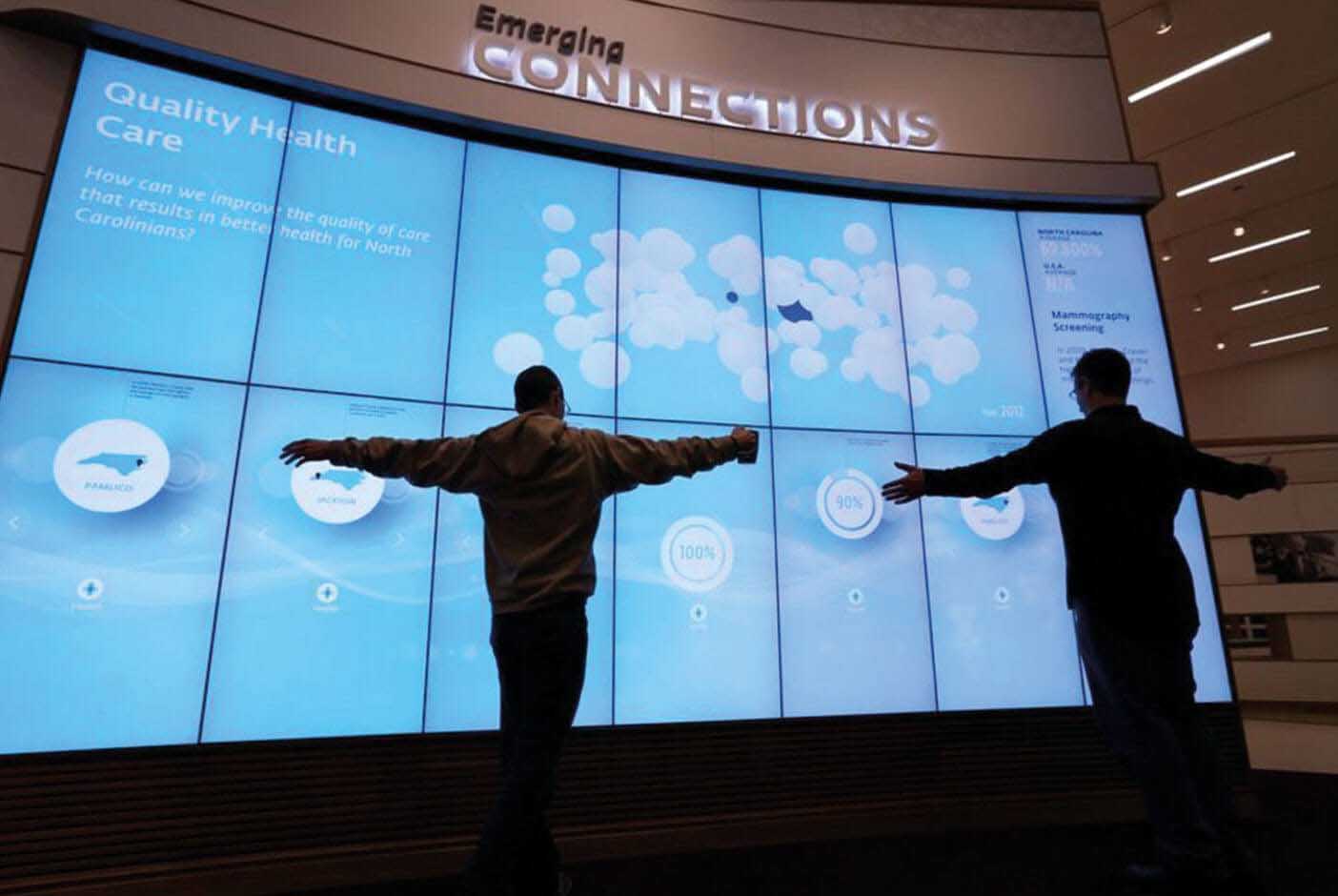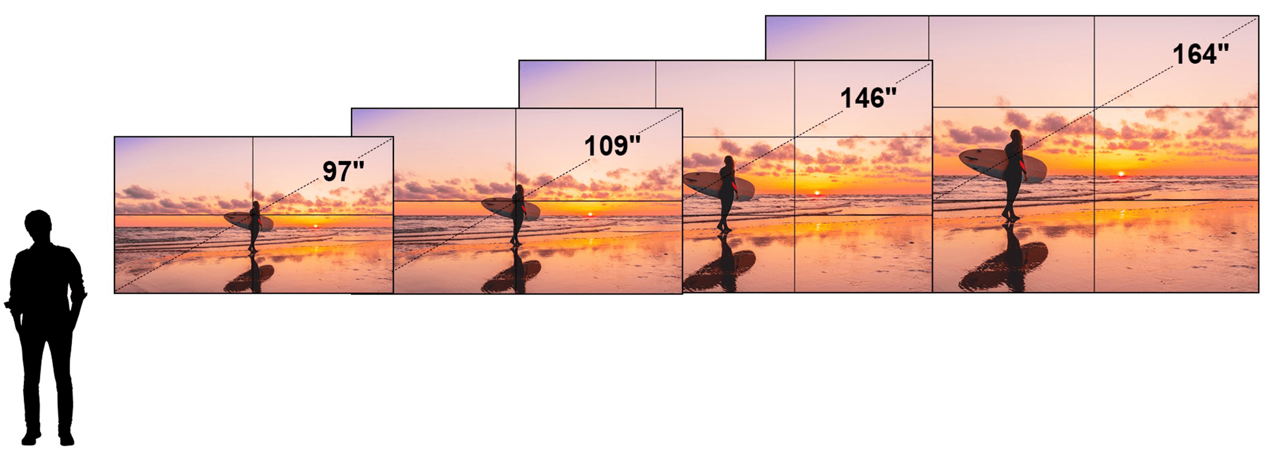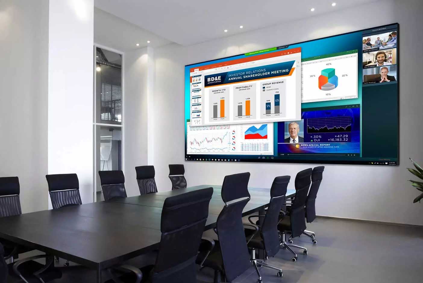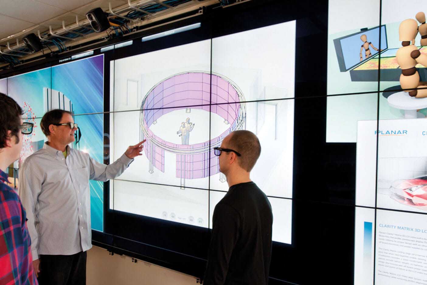 A single 110″ PLANAR UltraRes display provides the same resolution with a similar image size that can otherwise only be achieved with a 2×2 panel equipped 46″ LCD video wall. However, with no bars in the display area.