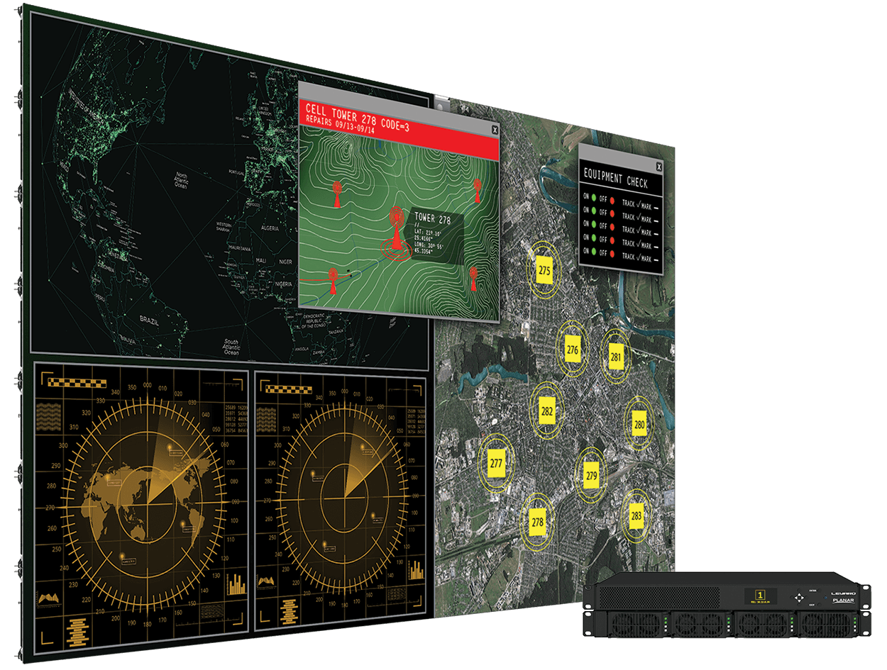 Planar DirectLight X takes built-in video wall processing to a new level with the off-board Planar® Video Controller (VC), providing source processing, windowing, control and monitoring of the video wall. The 1U Planar Video Controller (VC) delivering up to (9) 1920×1080 outputs from a single 1U Controller. The Planar Video Controller uses Planar® Big Picture Plus™ Video Wall Processing to deliver more extensive on-display and off-board video wall processing, and scale sources across the entire video wall or any section of the video wall, including multiple 4K @ 60Hz signals. Using built-in scaling, users can combine content from a higher number of independent sources, superimpose a smaller image over a larger one with Picture-in-Picture (PiP) and incorporate up to four unique image sources within a single display. Planar DirectLight X supports the latest 4K connectivity standards, including both HDMI 2.0 and DisplayPort 1.2, offering customers flexibility when building their video infrastructure.