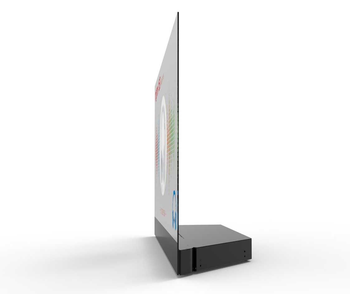 The Planar® LookThru® OLED Display (LO552) is a 55-inch transparent display that shows dynamic information on a transparent surface without the need for a backlight or enclosure. The electronics box of the Planar LookThru LO552 is positioned at a 90-degree angle to the display glass. The display can be used in either portrait or landscape orientation, and can be table-mounted, ceiling-mounted, or used in conjunction with multiple units to create large, eye-catching display areas. The Planar LookThru LO552 features Planar® ERO-OLED™ (Extended Ruggedness and Optics ™) technology with Corning® Gorilla® glass for enhanced durability and optics.