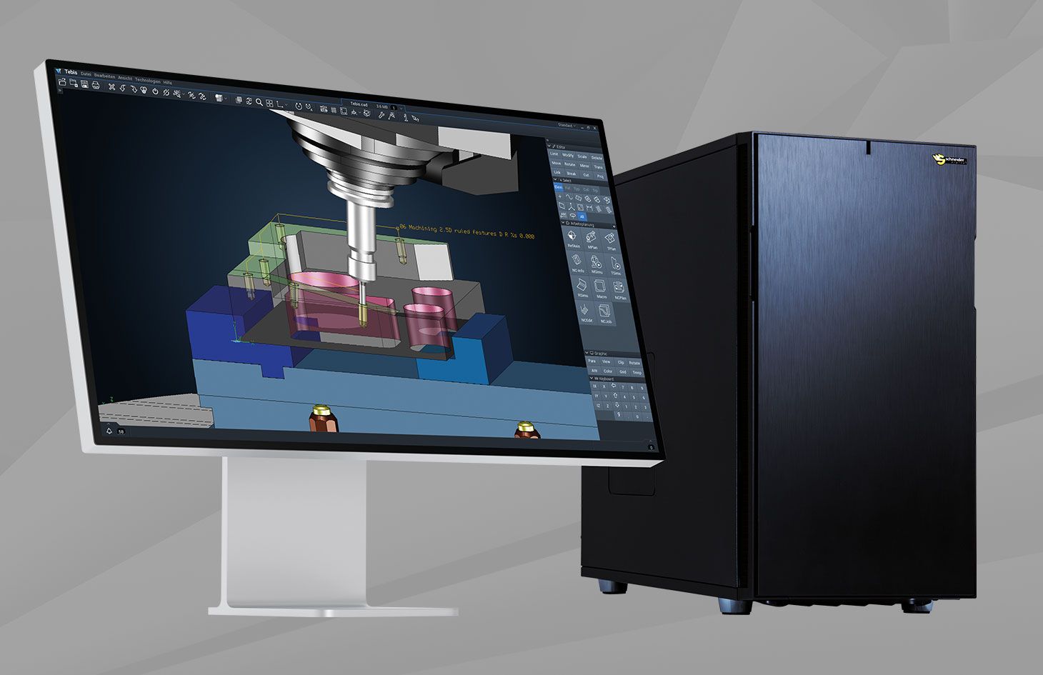 Tebis itself develops on workstations from Schneider Digital. This ensures even closer coordination of the systems with the software. In addition, optimized pre-parameterization of the BIOS settings – including specially tuned fan curves – ensures maximum stability and performance during intensive use.